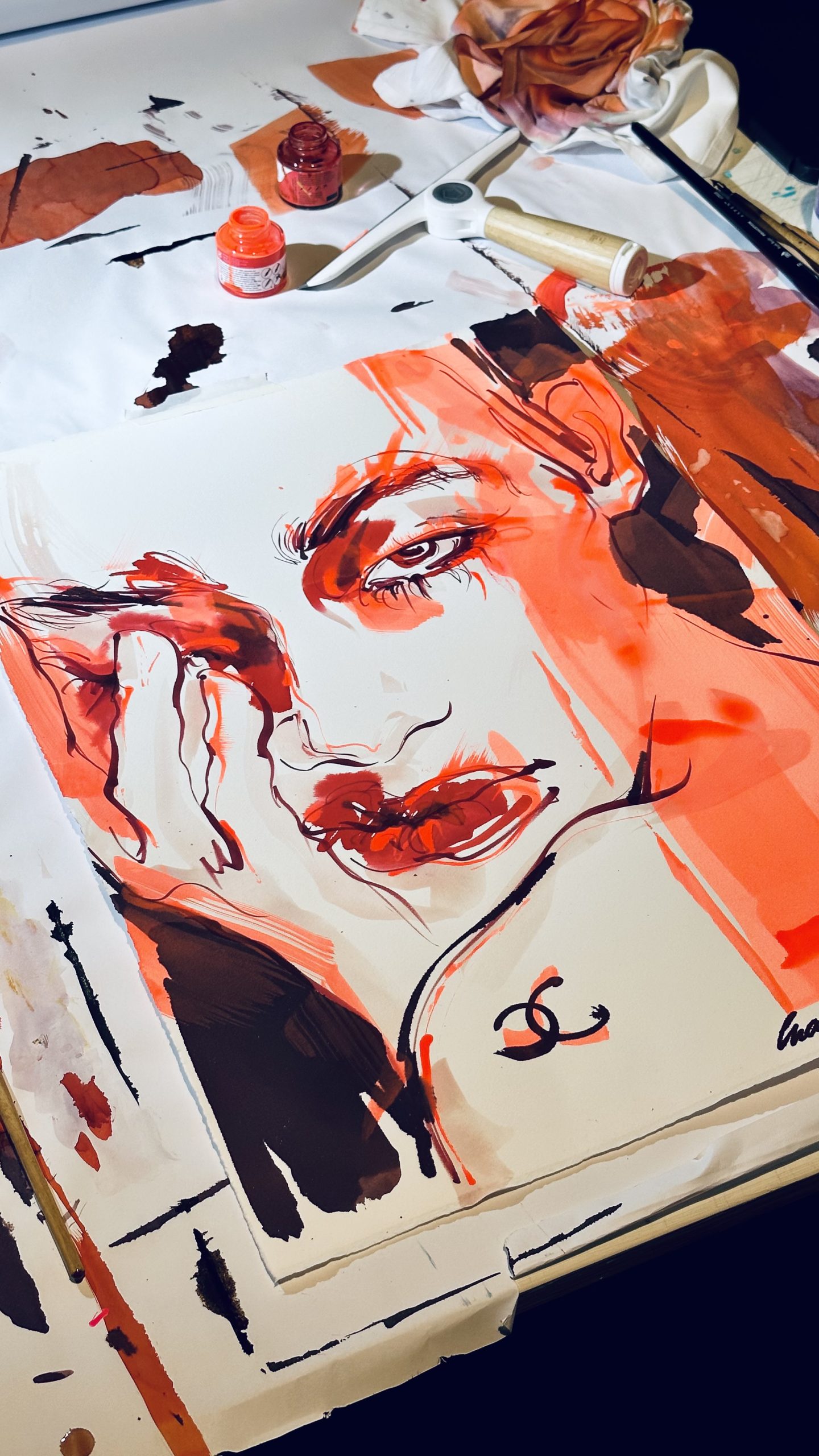 Step into ME Dubai’s luxurious third-floor atrium, where Lavdovskaya’s imaginative artworks surround the walls, luring guests into a realm where art and fashion merge in a mesmerizing dance. Each stroke of Lavdovskaya’s brush conveys drama and refinement, capturing the essence of the fashion world’s most prominent runways in places such as New York, Milan, and Paris.