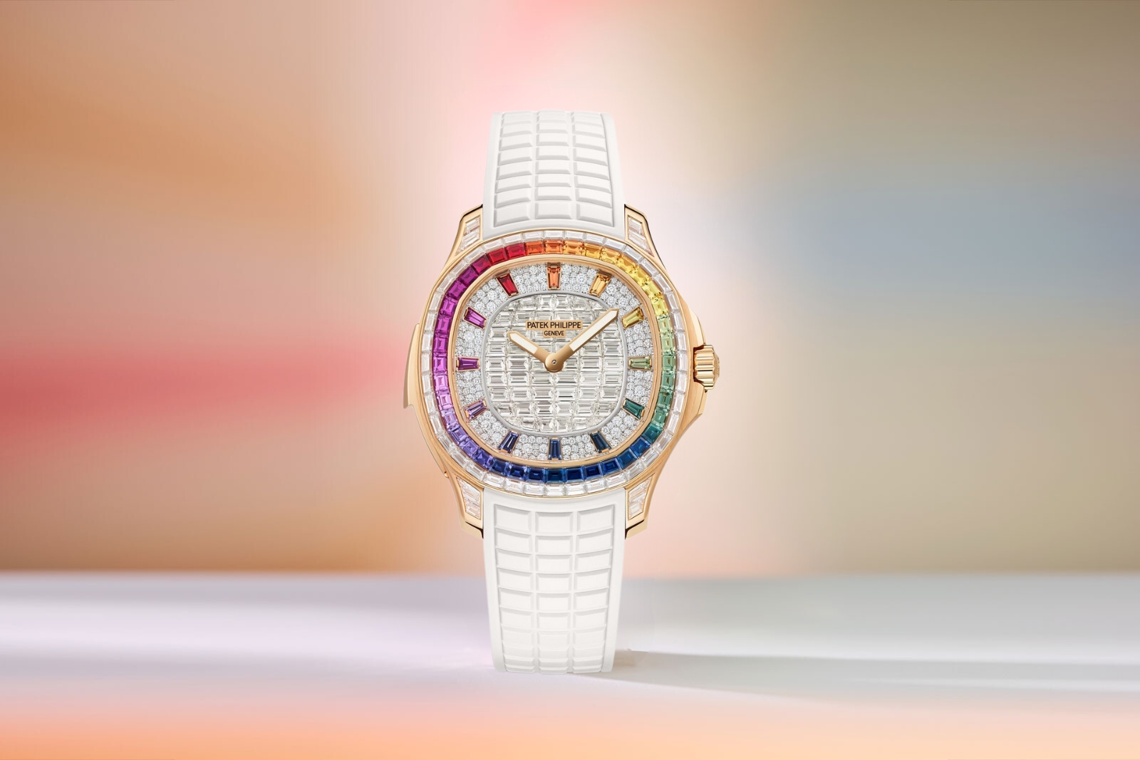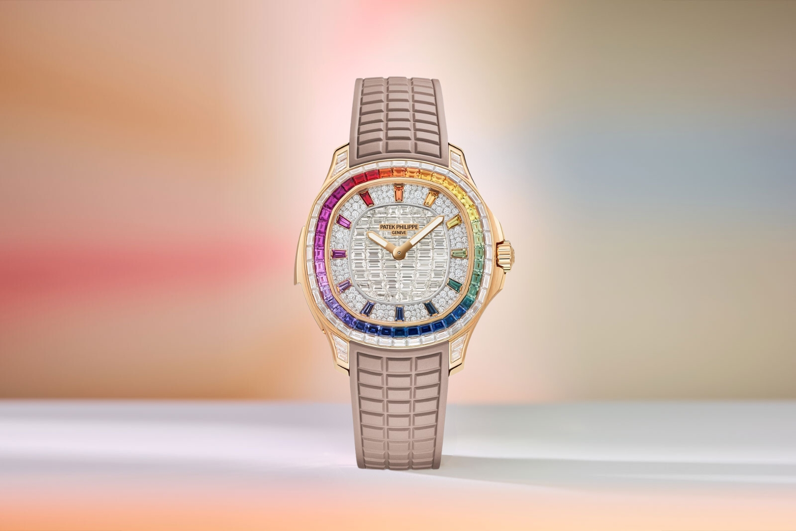 Now, it has released the first Grand Complication to appear in the collection: the Aquanaut Luce “Rainbow” Minute Repeater Haute Joaillerie References.